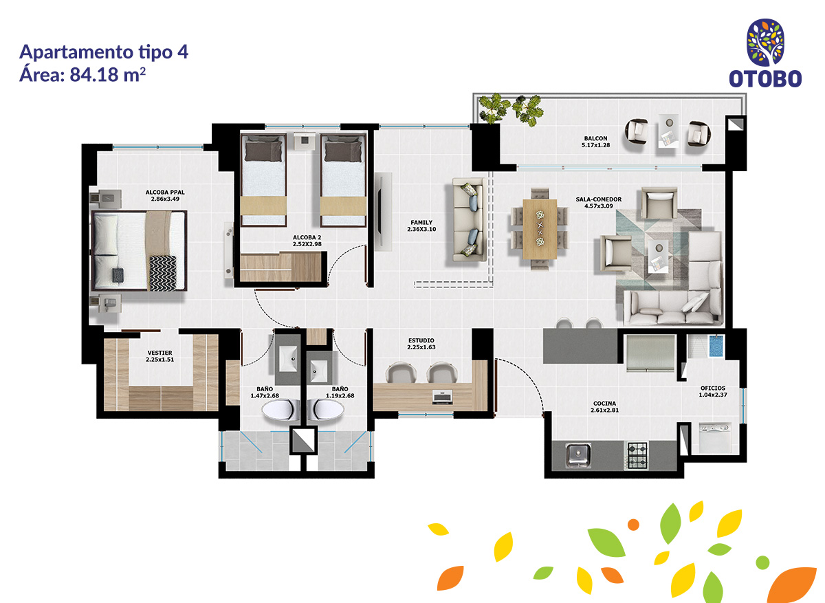 Este proyecto está compuesto por 4 torres de 10 pisos, 270 apartamentos y unas características propias para suplir las necesidades de sus habitantes.